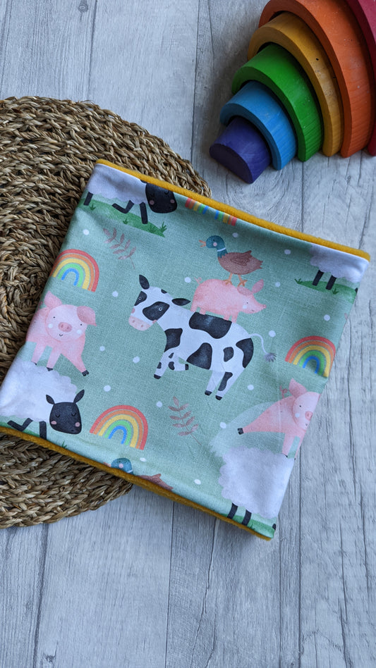 The scrunchies are so lovely and well made. The extra one in the bag really made my day. Thank you so very much. The snood is such a massive hit with my toddler who would usually refuse a scarf!! Xxx