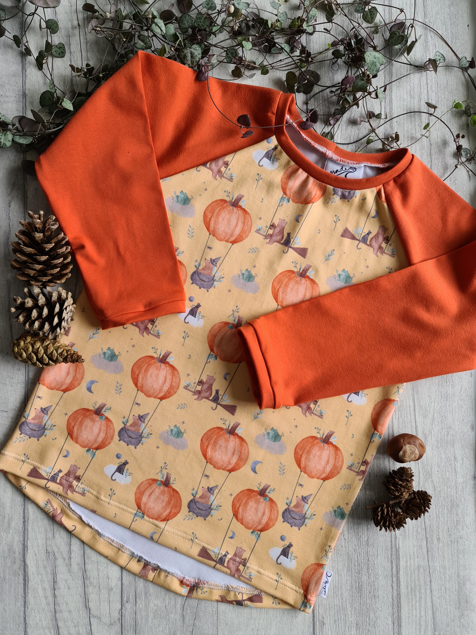 Available fully in the fabric you select, or with sleeves in a plain coordinating colour. Please leave a note at checkout if there's a particular colour you have in mind.