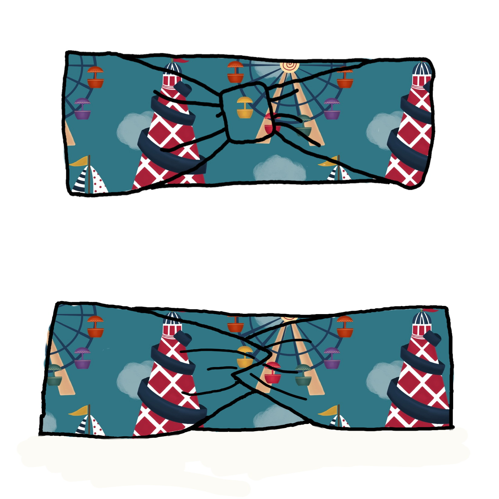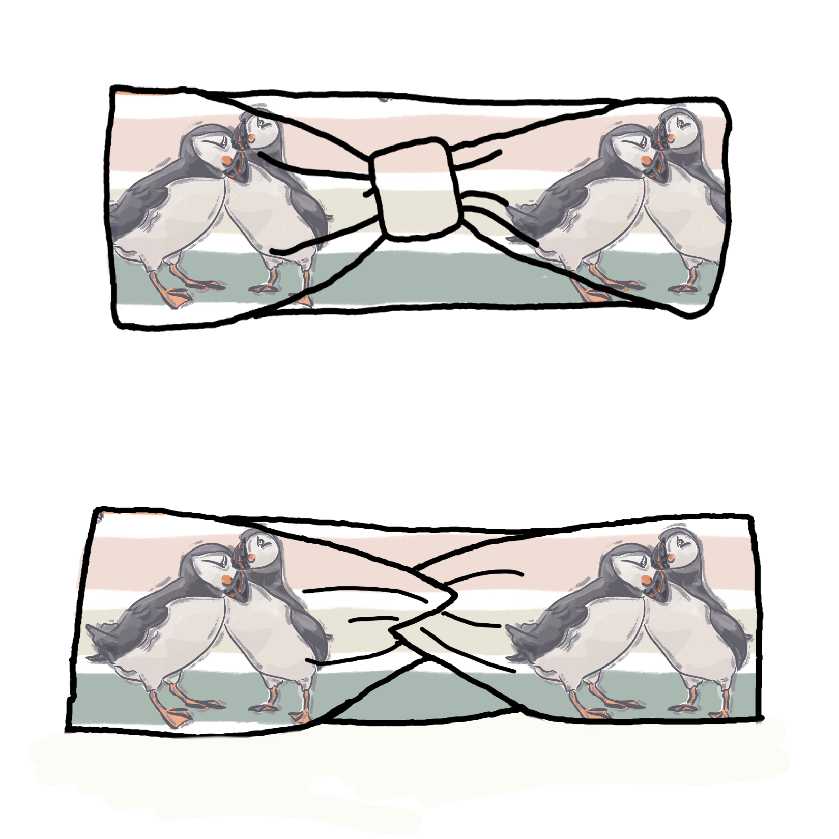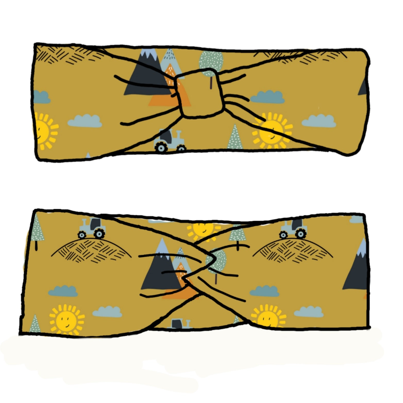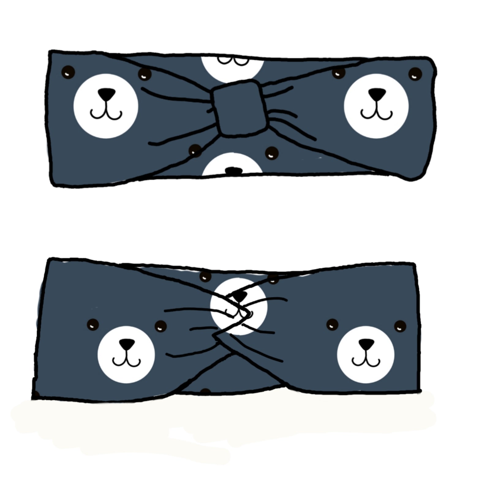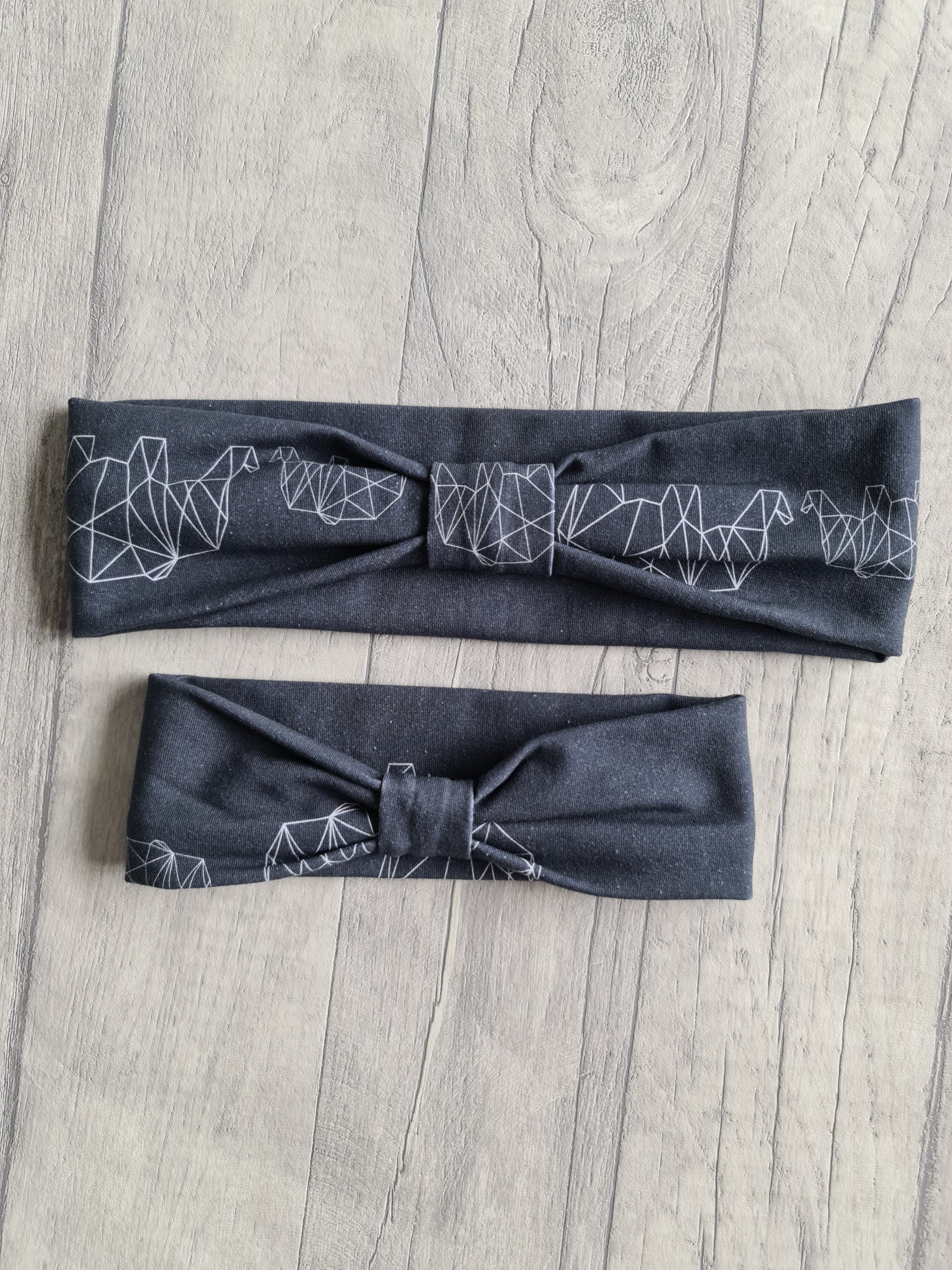 Our headband are a fake 'bow' style with a fake 'bow' feature. You can wear them with the feature at the front, or the back - giving 2 different looks in one.
