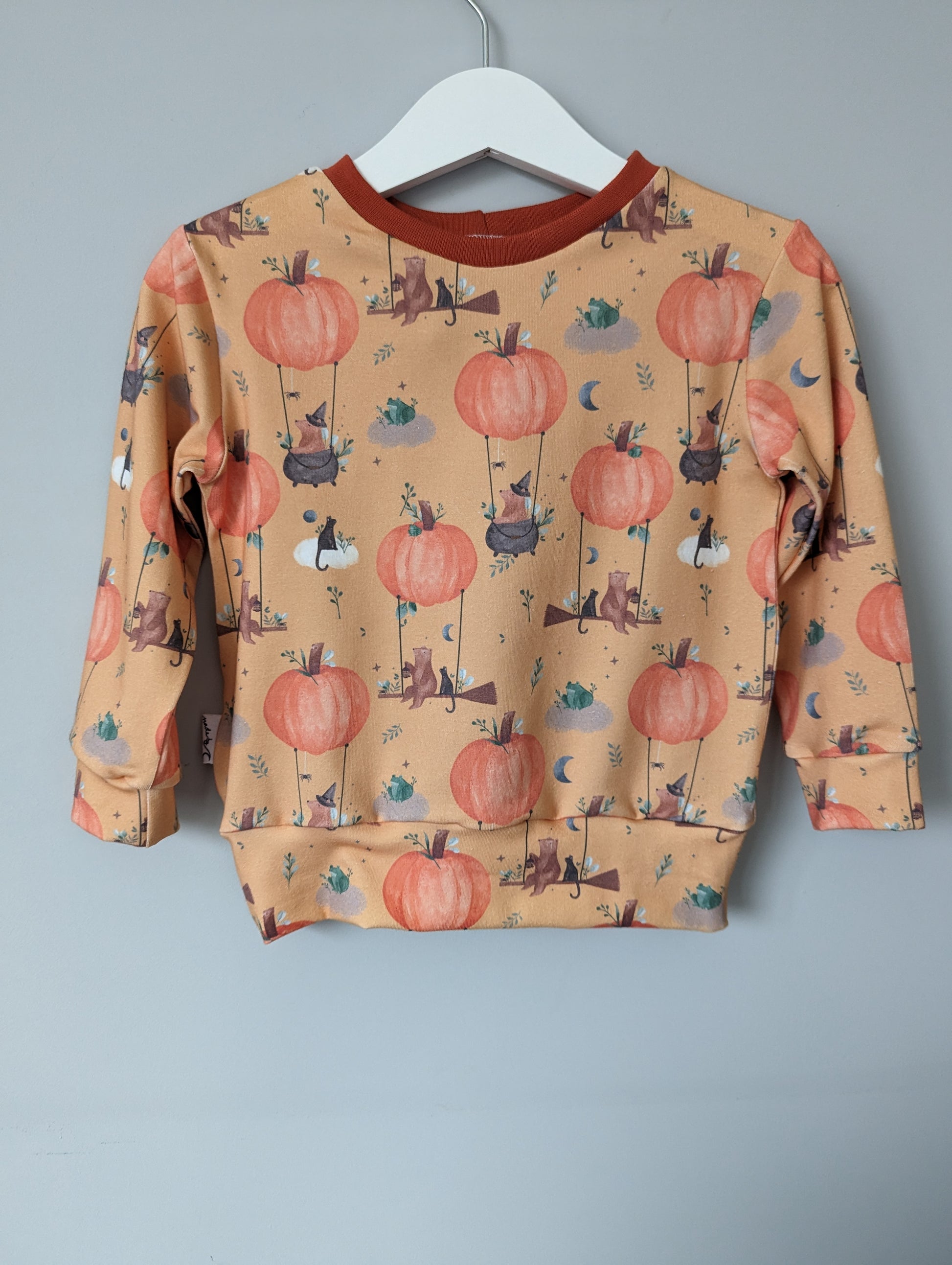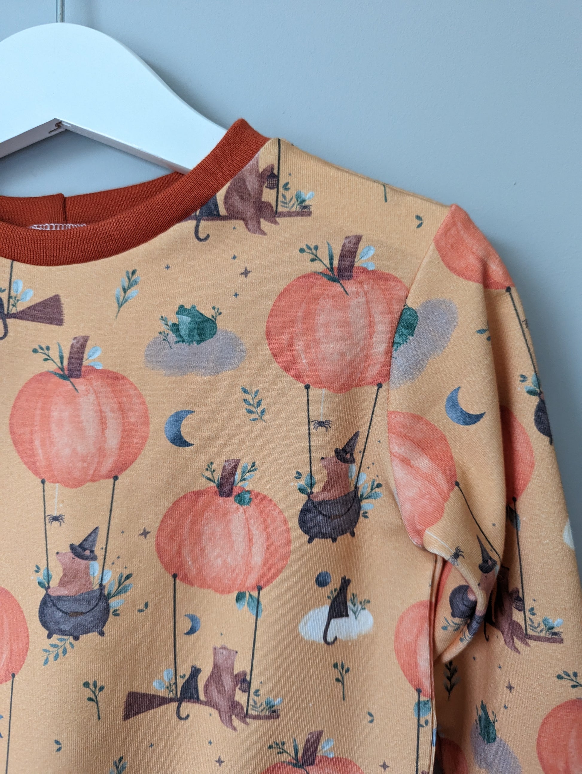 Our 'jumper' style tops are made in our cotton jersey prints (think legging fabric), making them lightweight and the jumper style fit makes them a great item for layering in cooler weather.