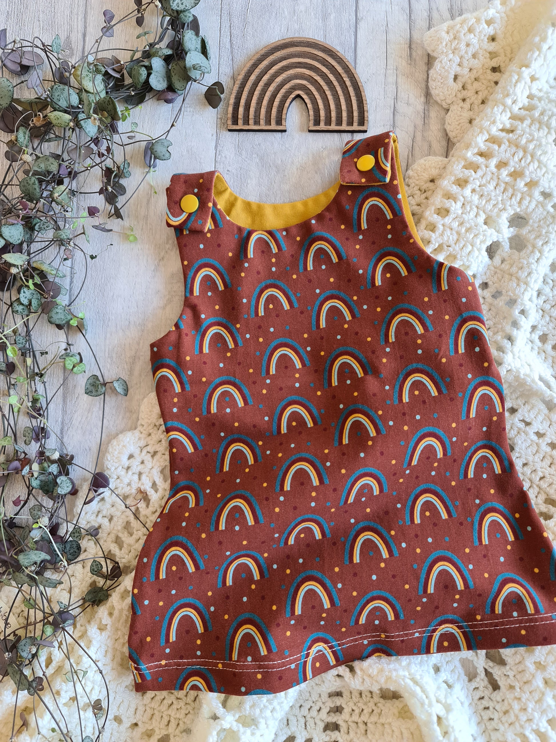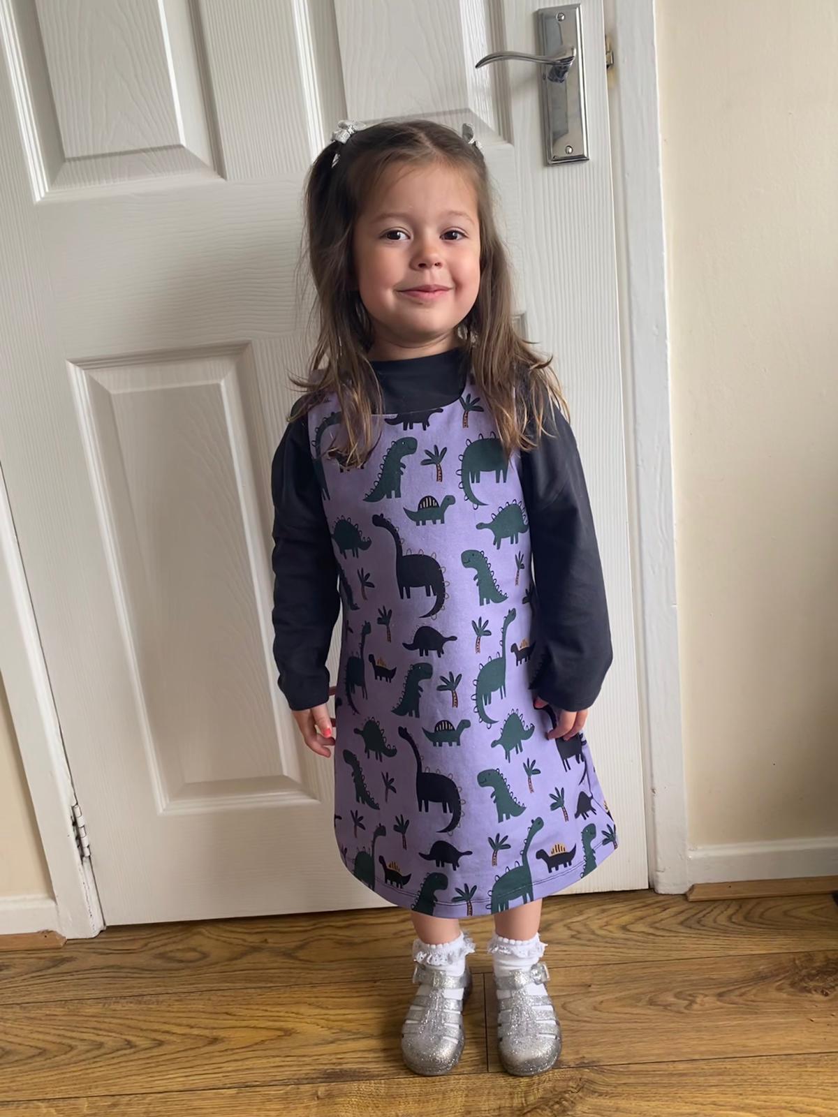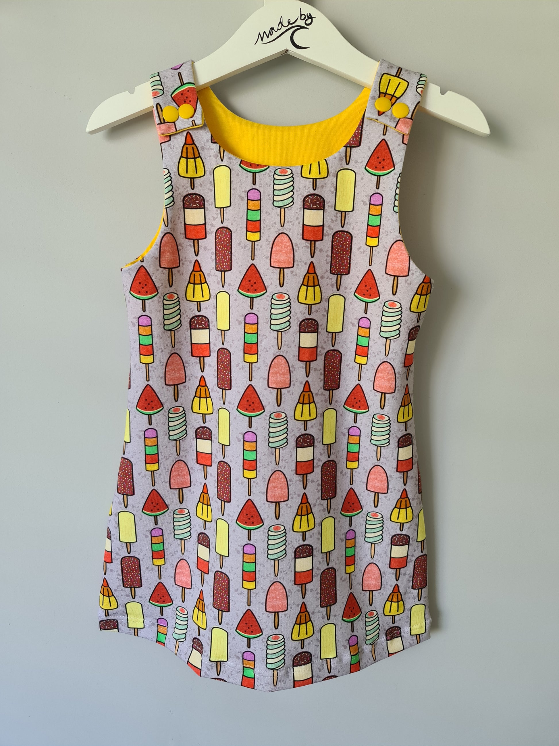 Our romper dresses are semi-lined with a plain coordinating fabric. They are approximately knee length and fasten with two poppers at the shoulders.