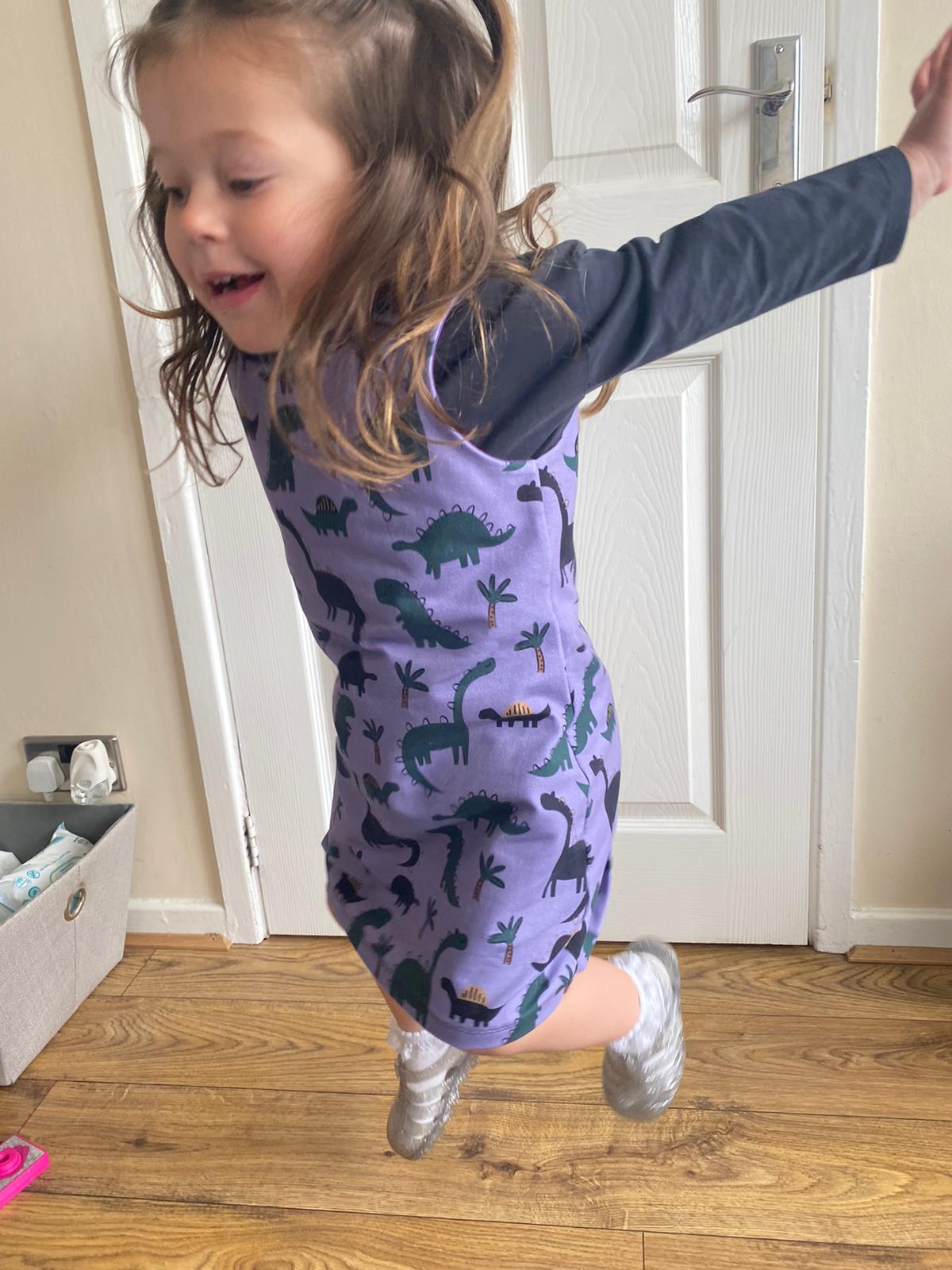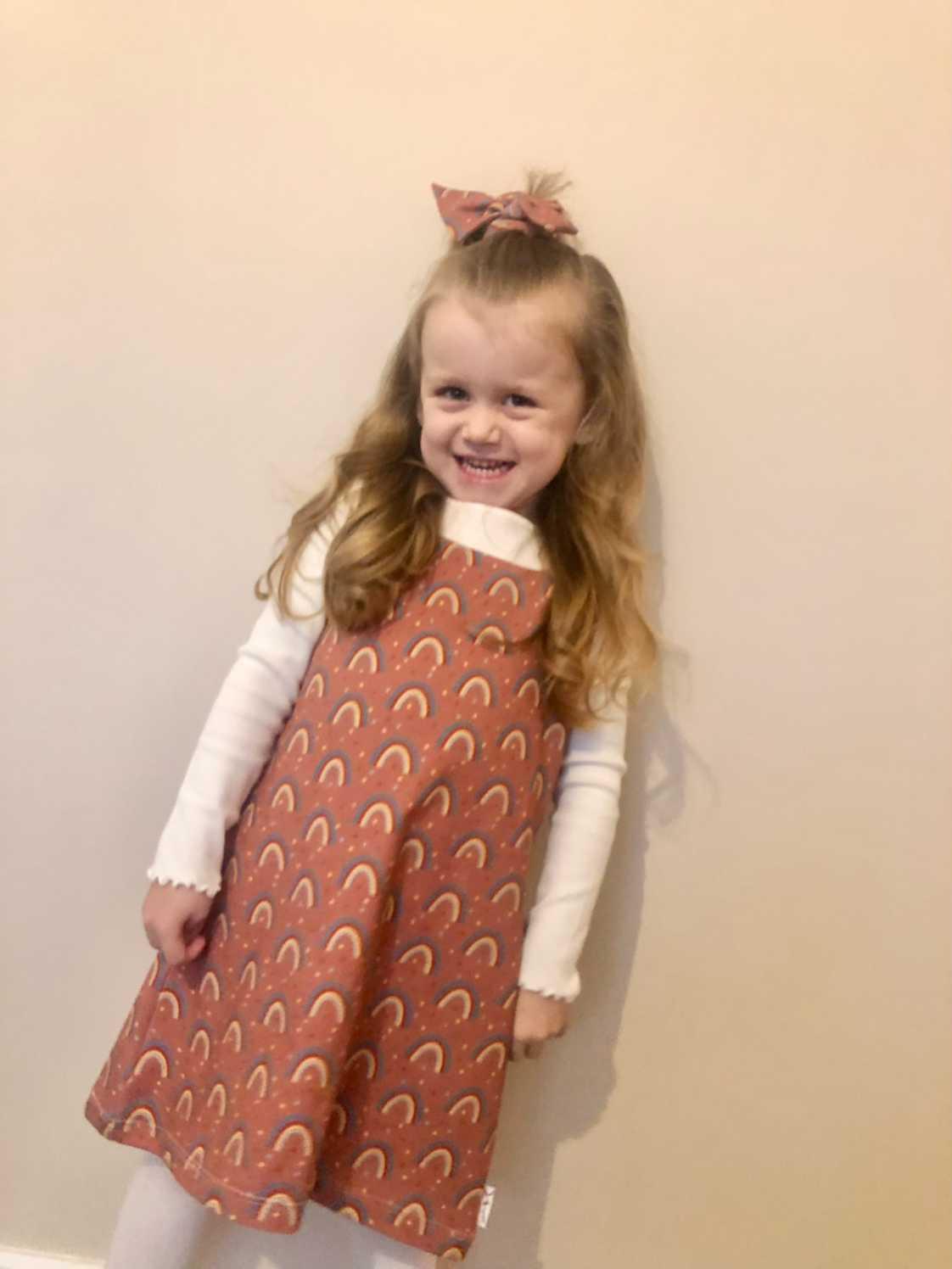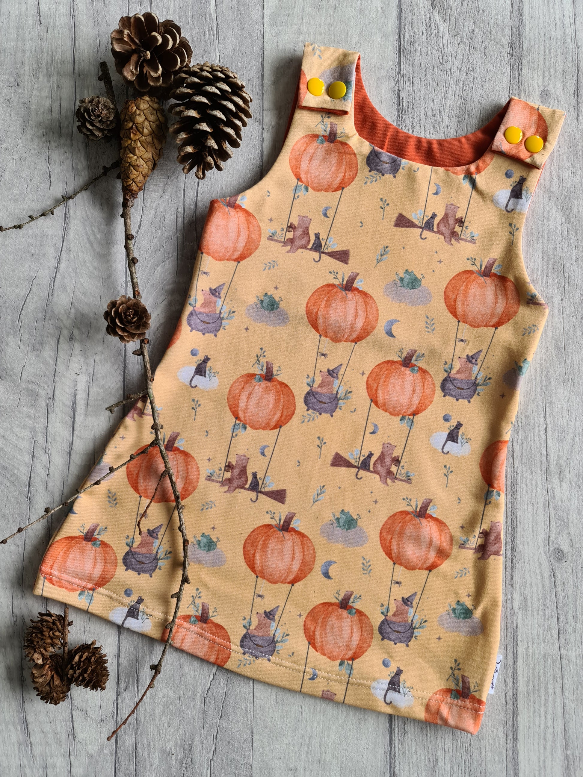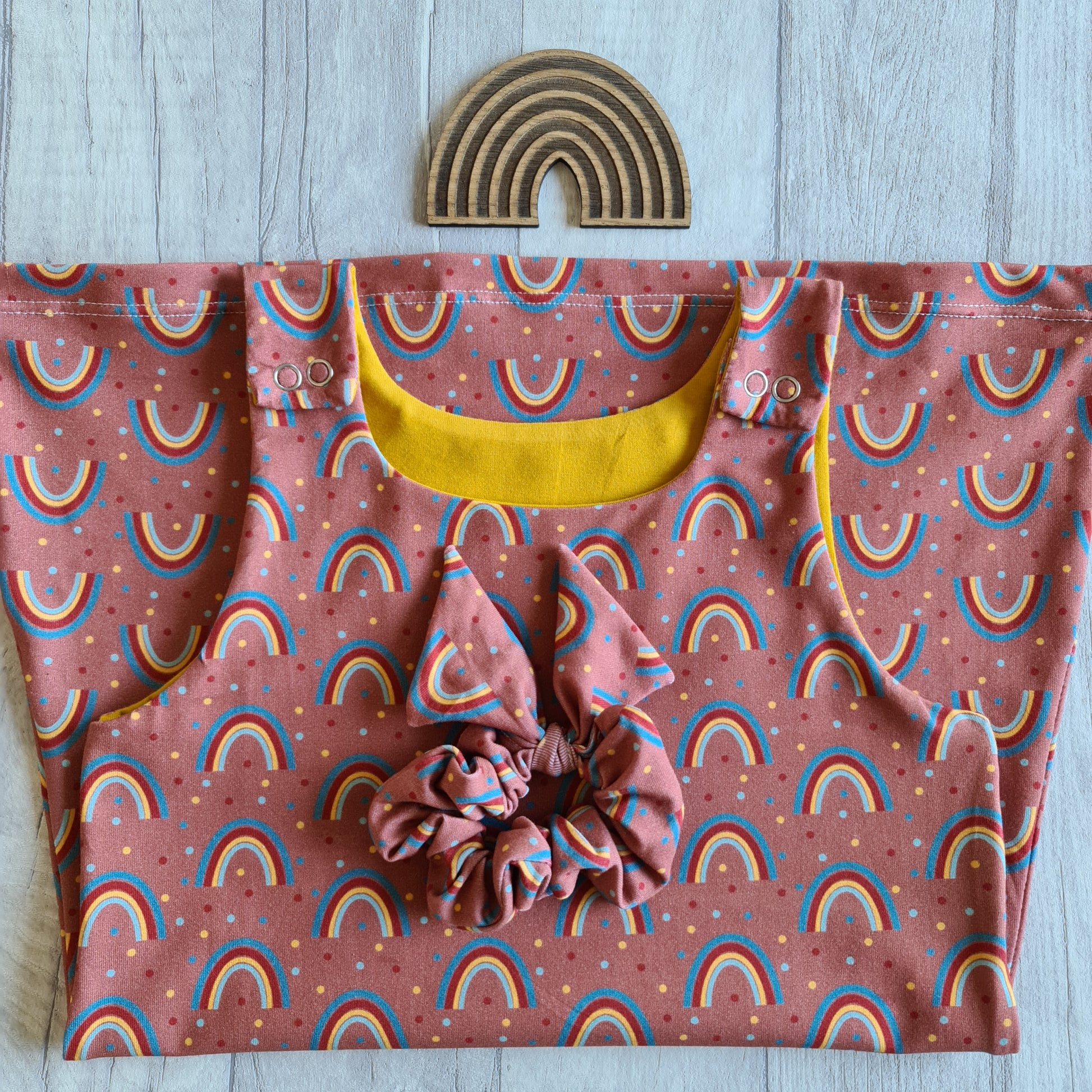 Our romper dresses are semi-lined with a plain coordinating fabric. They are approximately knee length and fasten with two poppers at the shoulders.